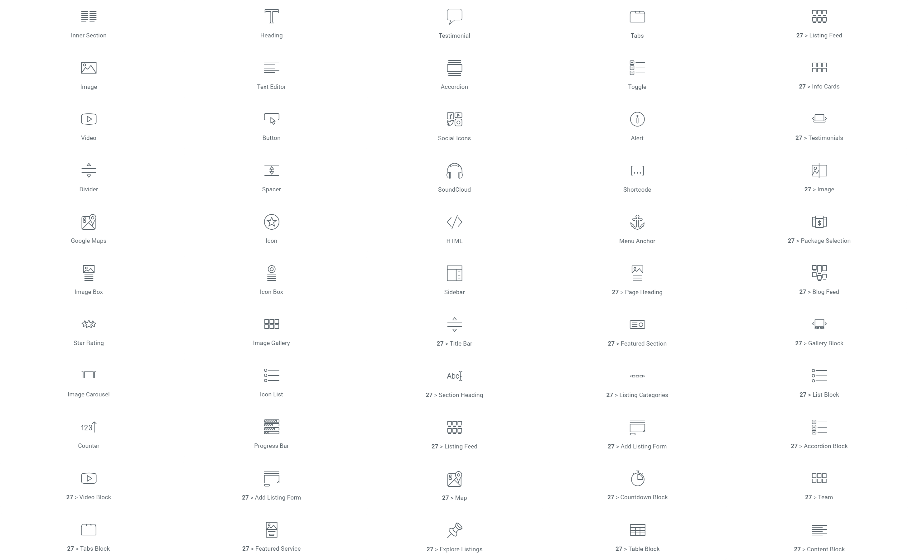 All elementor widgets